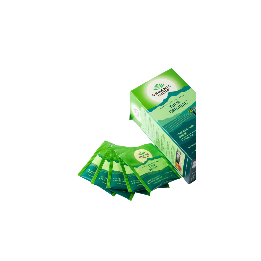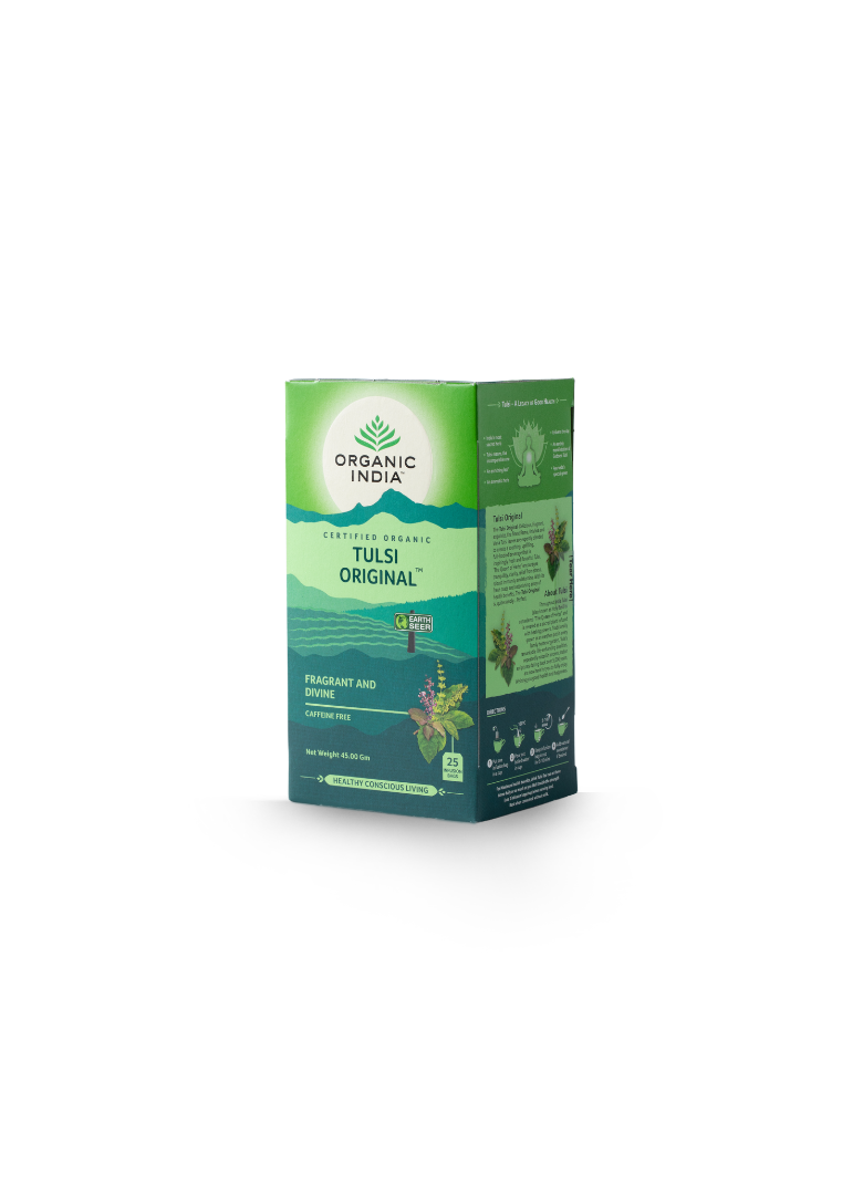 Γευστικό, αρωματικό, εξαιρετικό! Tα πιο εκλεκτά φύλλα Rama, Krishna και Vana Tulsi δημιουργούν ένα δροσερό και γευστικό καταπραϋντικό και τονωτικό ρόφημα. Το Tulsi (ιερός βασιλικός), η “Βασίλισσα των Βοτάνων” προάγει την ηρεμία, τη διαύγεια, την ανακούφιση από το στρες, την ισχυρή ανοσία και την αντοχή. Με τη δροσερή του γεύση και τα εκπληκτικά του οφέλη για την υγεία, το Tulsi Original είναι απλά… τέλειο!